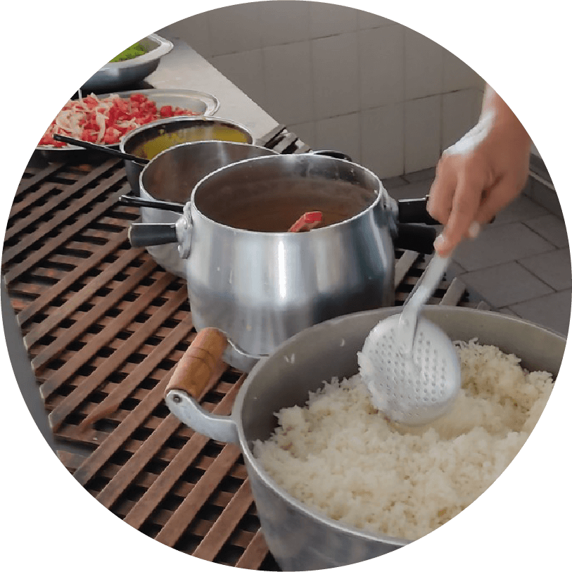 São servidas diariamente 4 refeições sendo: café da manhã, almoço, lanche e jantar preparados com muito amor e carinho. Nossa cozinha atende todas as necessidades e tudo é produzido dentro da nossa própria instituição.